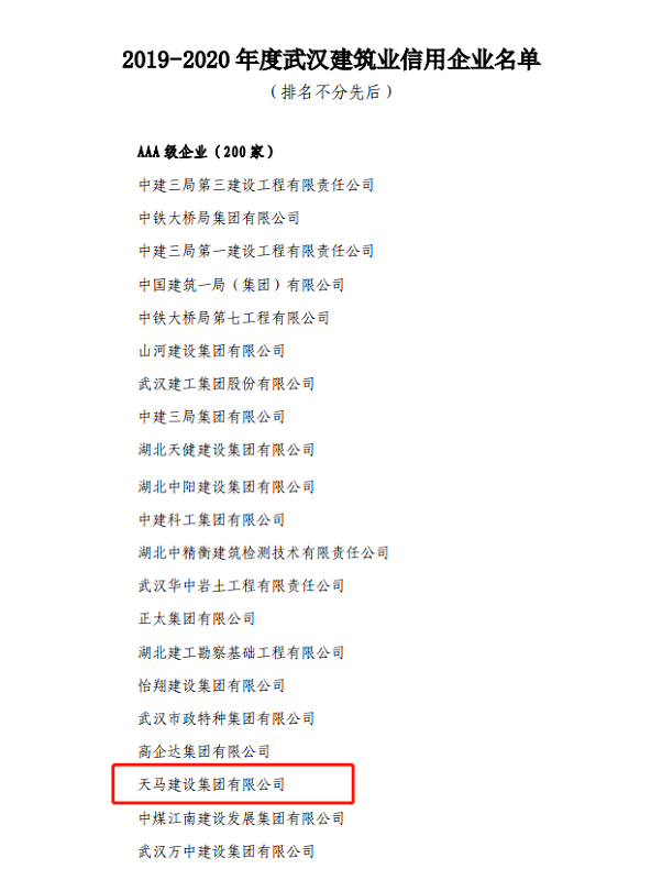 近日,天馬建設(shè)再度榮獲2020年度武漢市最具成長性企業(yè)和武漢建筑AAA級信用企業(yè)兩項殊榮。